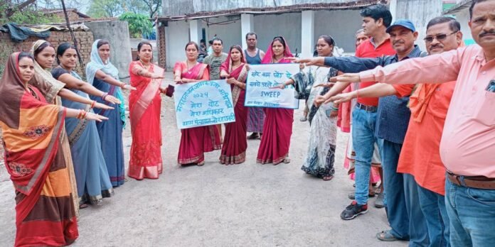 छत्तीसगढ़/कोरबा :- कलेक्टर एवं जिला निर्वाचन अधिकारी श्री अजीत वसंत के निर्देशन एवं स्वीप नोडल अधिकारी श्री संबित मिश्रा के मार्गदर्शन में लोकसभा निर्वाचन 2024 के दौरान शहरी एवं ग्रामीण क्षेत्रों में युवा, पुरूष, महिलाओं द्वारा मतदान के प्रति जागरूक करने हेतु रैली, दीवारों पर नारा लेखन तथा स्कूलों छात्र-छात्राओं द्वारा निबंध, भाषण, मेहंदी प्रतियोगिता, पोस्टर निर्माण जैसे अनेक कार्यक्रमों के माध्यम से शत-प्रतिशत मतदाताओं को जागरूक किया जा रहा है। इसी कड़ी में जनपद पंचायत पोड़ी उपरोड़ा के स्वामी आत्मानंद उत्कृष्ट हिंदी माध्यम विद्यालय बिंझरा में राष्ट्रीय सेवा योजना इकाई द्वारा मतदाता जागरूकता अभियान के तहत नारा लेखन और घर-घर जागरूकता अभियान चलाया गया। जनपद पंचायत पाली के जोरहाडबरी ग्राम पंचायत में ग्रामीण महिला-पुरूषों के द्वारा मतदाता जागरूकता अभियान के तहत पोस्टर के साथ जागरूकता रैली निकाली गई। इसके साथ ही ग्रामीणों ने सामूहिक रूप से शत-प्रतिशत मतदान करने की शपथ ली। ग्राम पंचायत भैंसमा में ग्रामीण महिलाओं के द्वारा मतदाता जागरूकता रैली निकालकर मतदान कर लोकतंत्र को सशक्त बनाने का संदेश दिया।