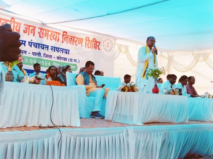 छत्तीसगढ़/कोरबा :- जिला स्तरीय जनसमस्या निवारण शिविर का आयोजन आज पाली ब्लॉक के दूरस्थ ग्राम सपलवा में आयोजित किया गया। शिविर में मुख्य अतिथि विधायक पाली-तानाखार श्री तुलेश्वर सिंह मरकाम ने ग्रामीणों से कहा कि जिला स्तरीय जनसमस्या निवारण शिविर में सभी विभागों के अधिकारी उपस्थित रहते हैं। ग्रामीणों को अपनी समस्याओं के समाधान के लिए इन शिविरों में आकर लाभ लेना चाहिए। उन्होंने कहा कि शिविरों में ग्रामीणों की समस्याओं के निराकरण के साथ ही शासन की विभिन्न योजनाओं की जानकारी प्रदाय की जाती है। इसके साथ ही पात्र हितग्राहियों को शासकीय अनुदान, सामग्री वितरित कर लाभान्वित किया जाता है।